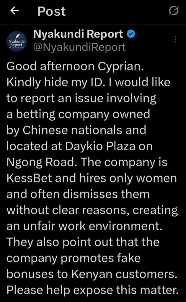 According to the whistleblower, shared with blogger Cyprian Nyakundi, the company’s operations appear to lack fairness and respect, creating an environment of fear for employees and confusion for users.